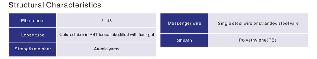 Metallic messenger,central tube,gel filling,non-metallic strength member,polyethylene sheath figure 8 self-supporting outdoor cable for communication purpose.